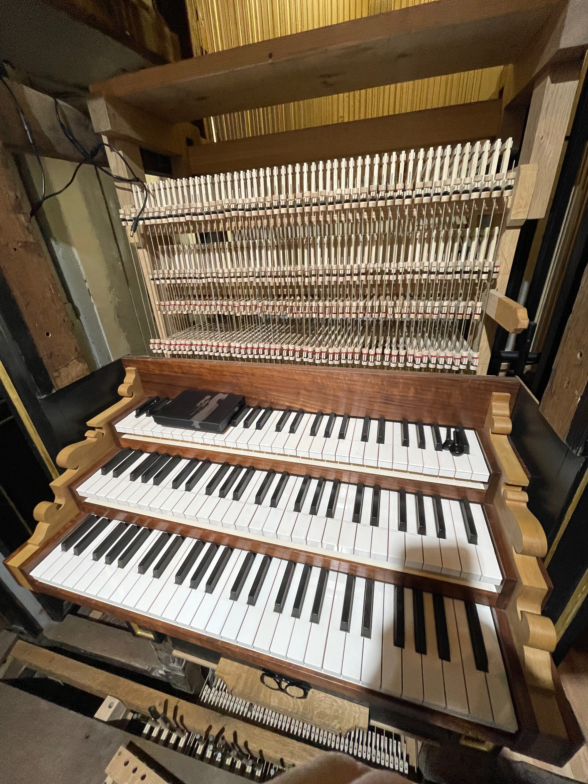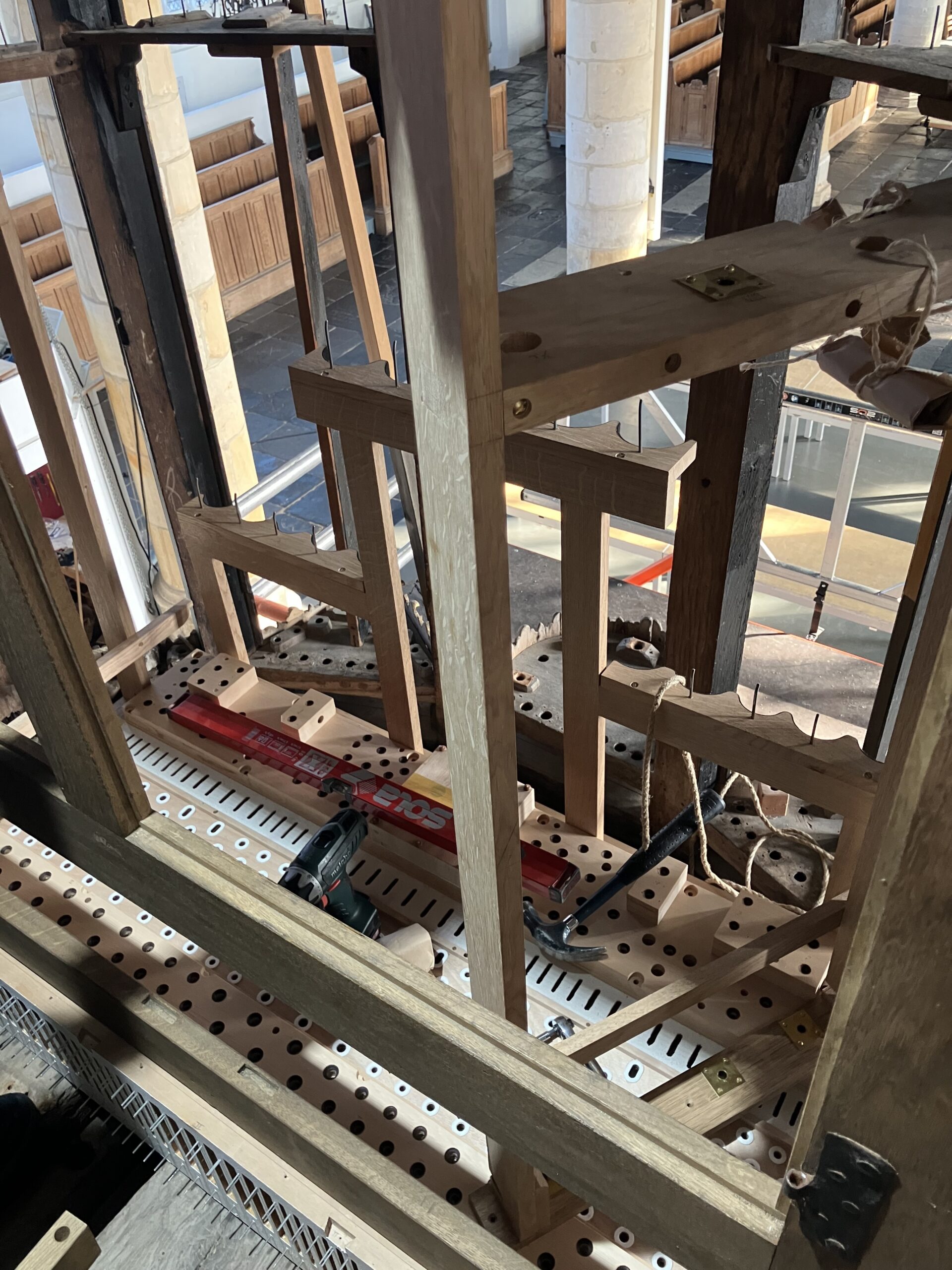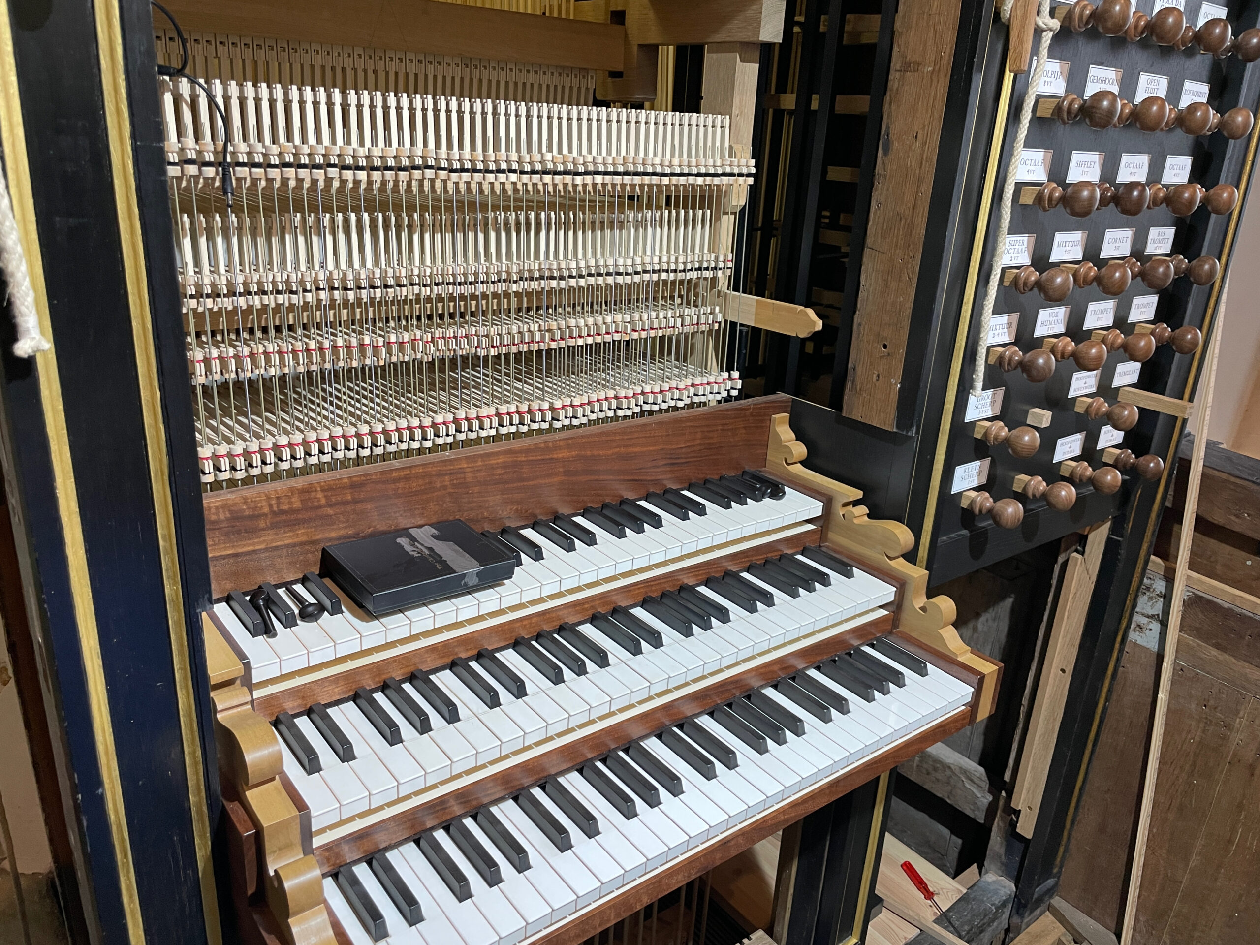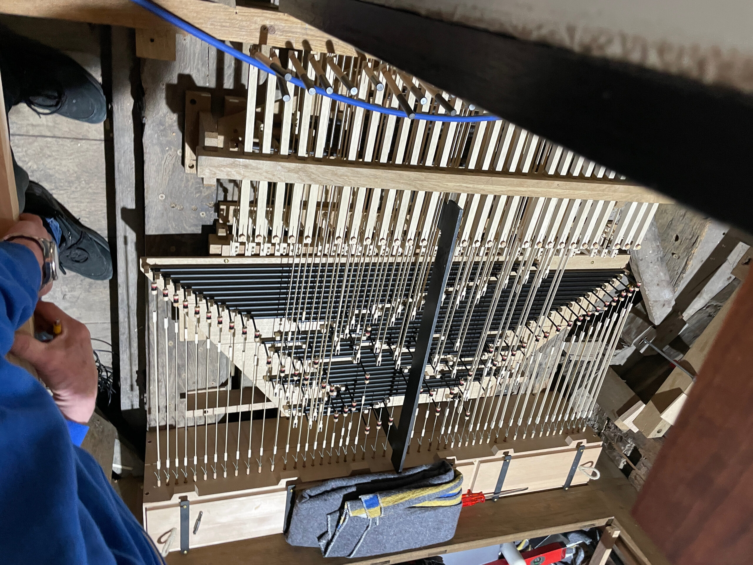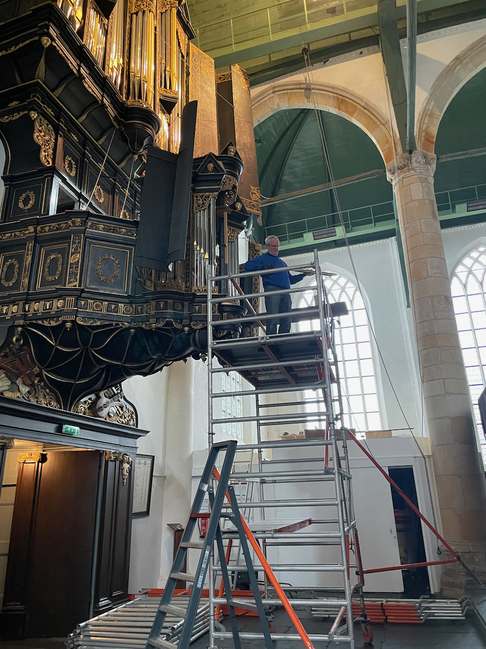 Om het orgel in de Westerkerk helemaal compleet te hebben moet alleen het Rugwerk nog gebouwd worden. Het Bovenwerk kon in 2021 al in gebruik genomen worden, het Hoofdwerk in 2024. Na de nodige voorbereidingen in de werkplaats van orgelbouwer Verschueren is begin maart 2026 begonnen met de echte bouw van het Rugwerk. De foto’s laten hier iets van zien. Er moet wel doorgewerkt worden, op 28 juni is het openingsconcert waarbij Theo Jellema het geluid van het dan complete orgel laat horen.