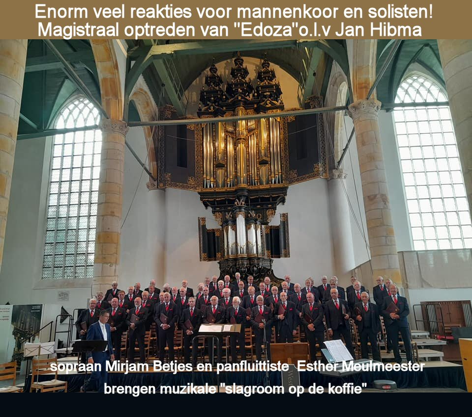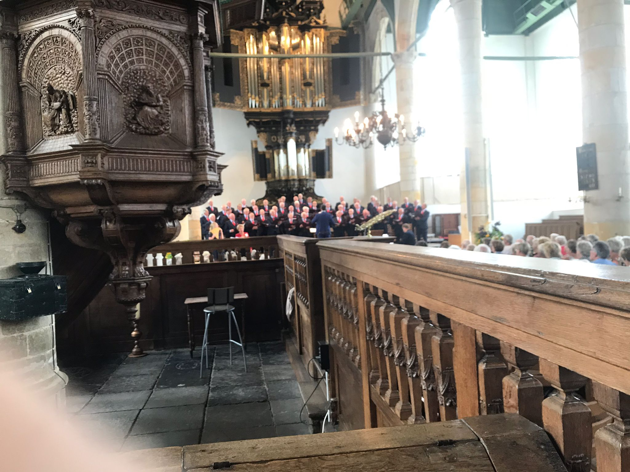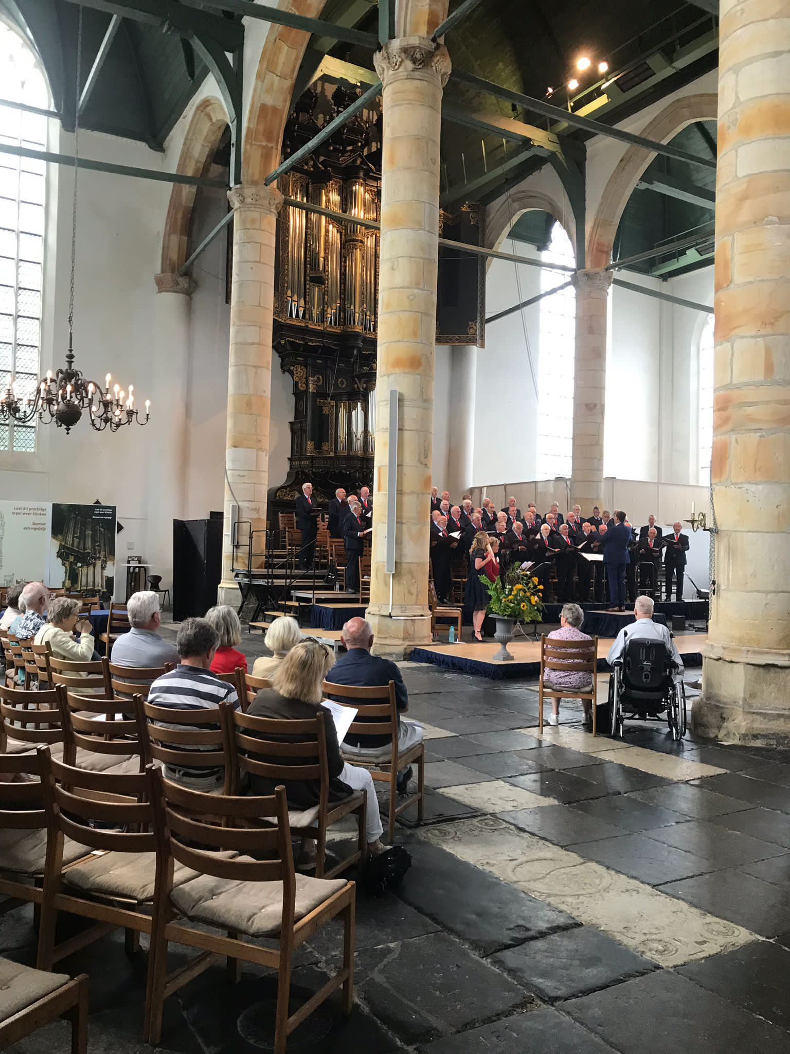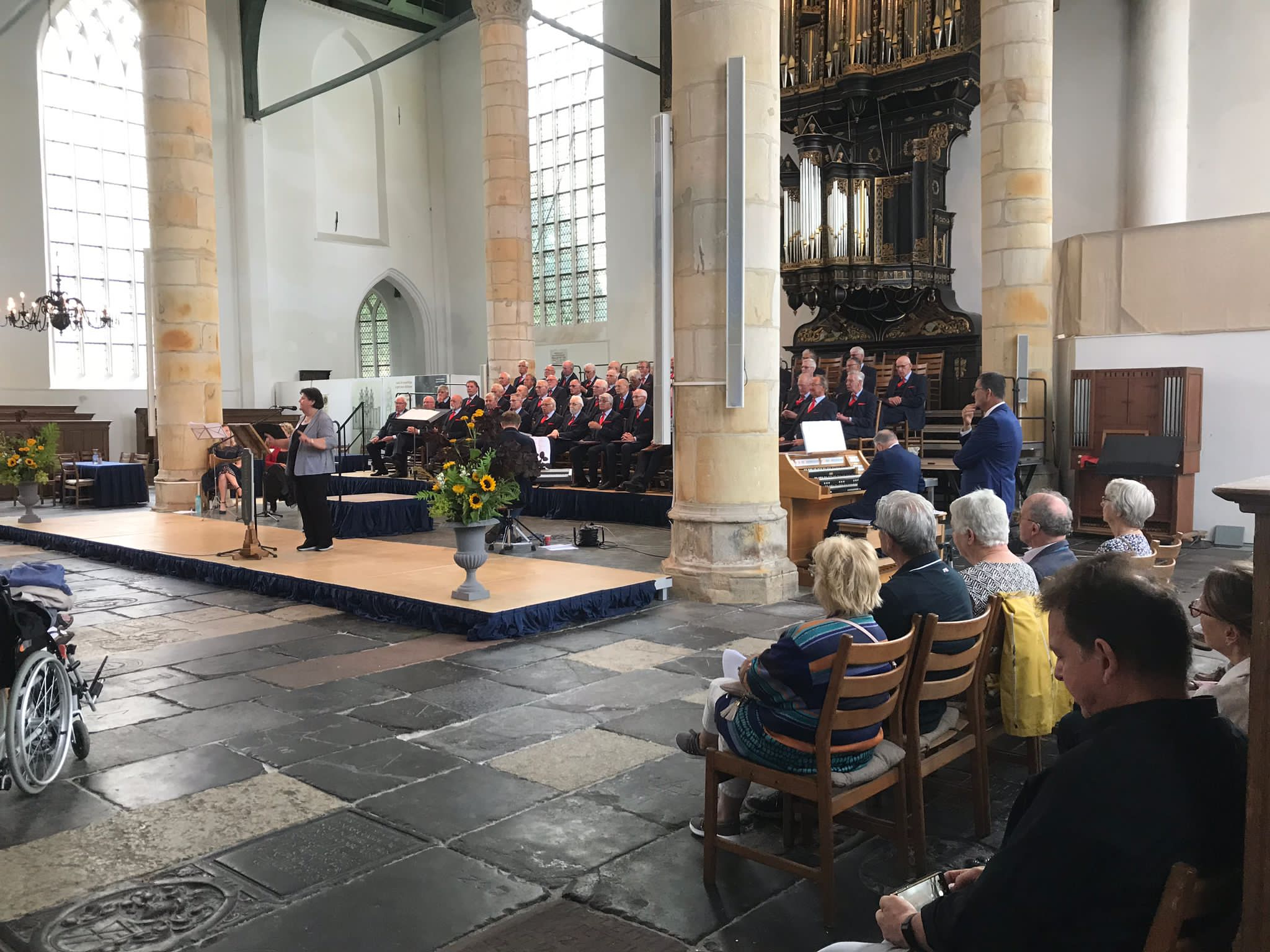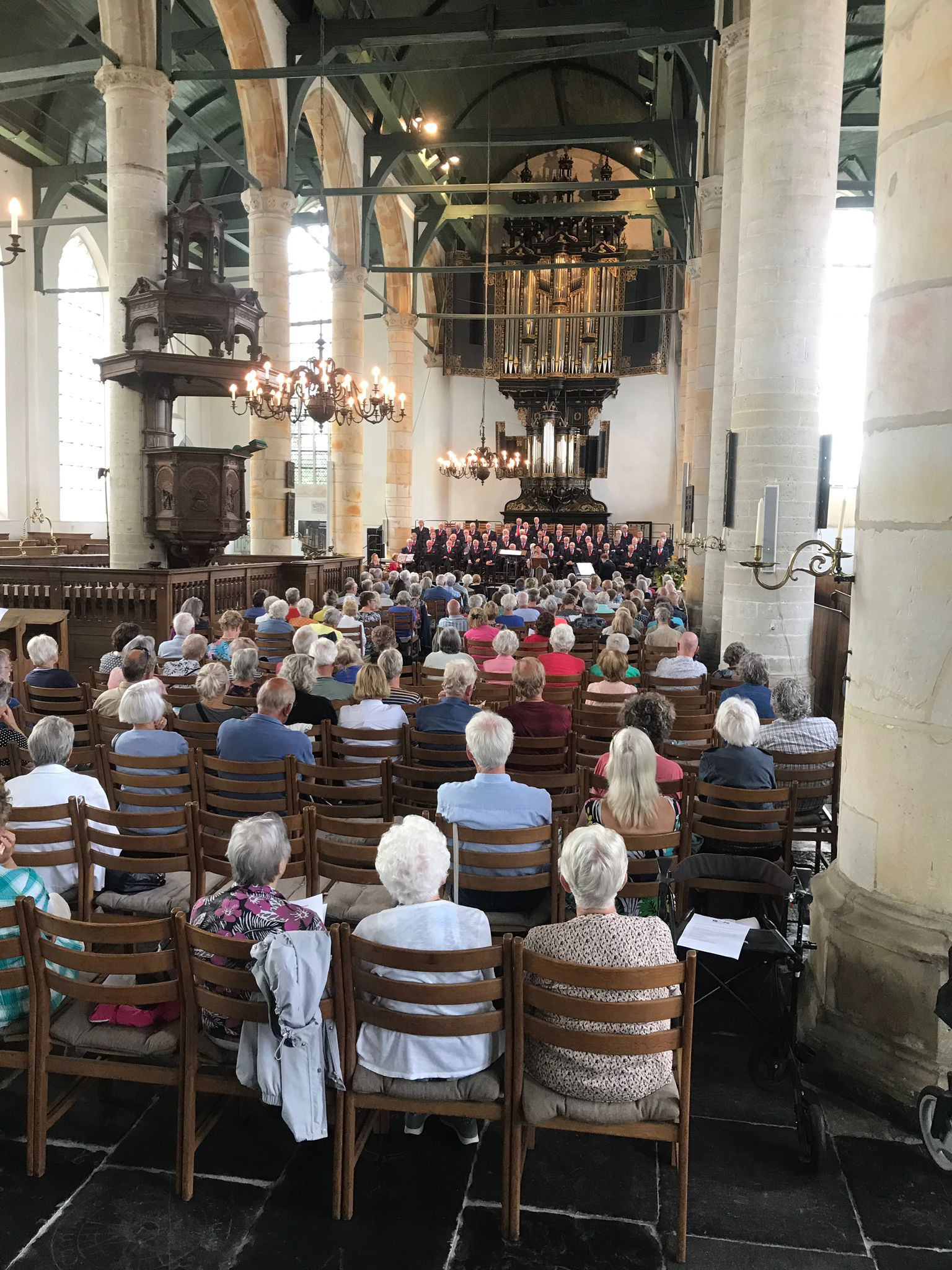 Het Sneeker mannenkoor had zich op 25 juni geen beter publiek kunnen wensen dan de bijna 300 man die naar de Westerkerk gekomen waren. Enthousiast werd er geluisterd en vooral ook meegezongen. Drijvende kracht vanuit de Westerkerk was Simonne De Clerq, in haar woorden: “Het Sneeker mannenkoor en solisten brachten een geweldige concert ten gehore. Vooral de samenzang was een succes. De mensen bulderden uit volle borst mee! De reacties achteraf waren positief en vooral dat samenzingen vond iedereen prachtig. Dirigent en koor waren ook heel tevreden over de sfeer en de verzorging. De Sneekers waren vol bewondering over de kerk en riepen toen ze binnen kwamen: “Wat een tsjerke!””